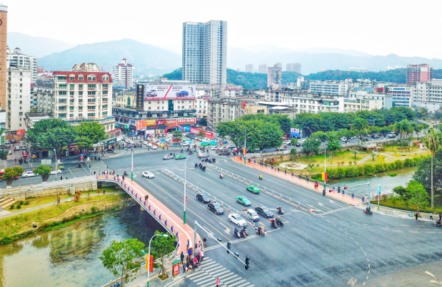 過(guò)去,顯得擁擠雜亂的龍門(mén)鎮(zhèn)主干道,如今變得寬敞、干凈、有序。車(chē)輛快速地通過(guò)雙向六車(chē)道的龍門(mén)主軸羅龍西路,新建人行天橋上的人們從容地走過(guò),道路兩旁的停車(chē)位略顯富足,沿街店鋪立面美觀(guān)大氣。該項(xiàng)目通車(chē)后有效暢通龍巖西出入口連接線(xiàn)及龍門(mén)鎮(zhèn)主軸的交通,進(jìn)一步改善和優(yōu)化龍巖中心城市出入口環(huán)境,提升城市形象。