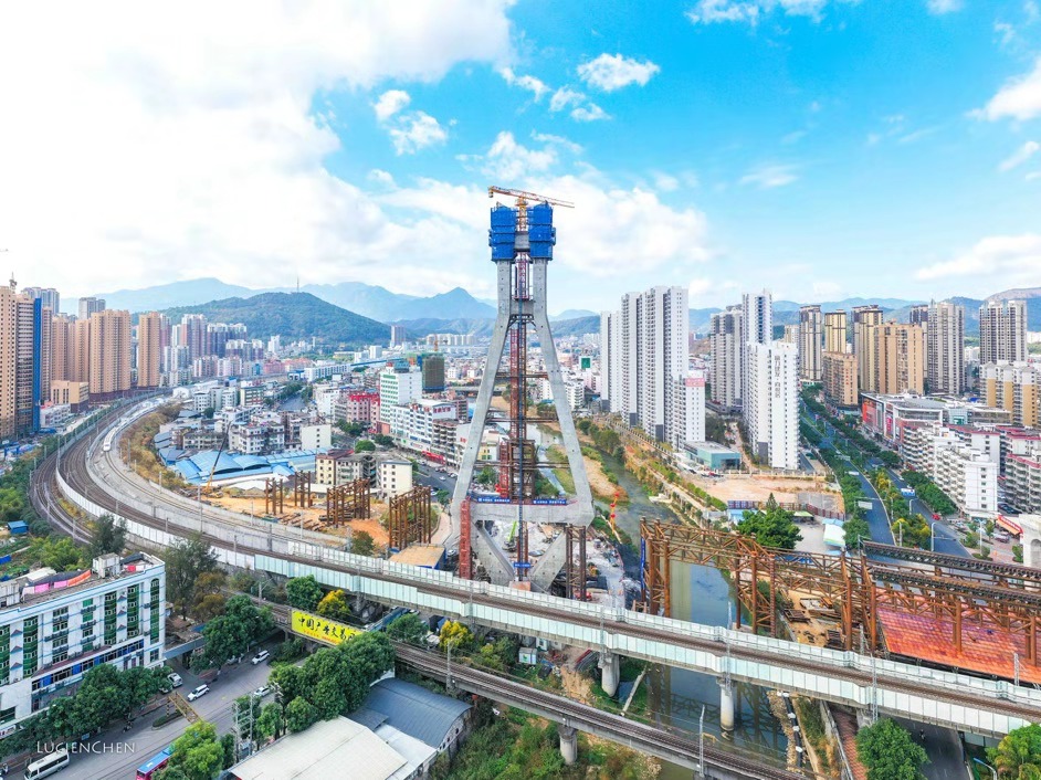 龍巖大橋主塔實現(xiàn)順利封頂